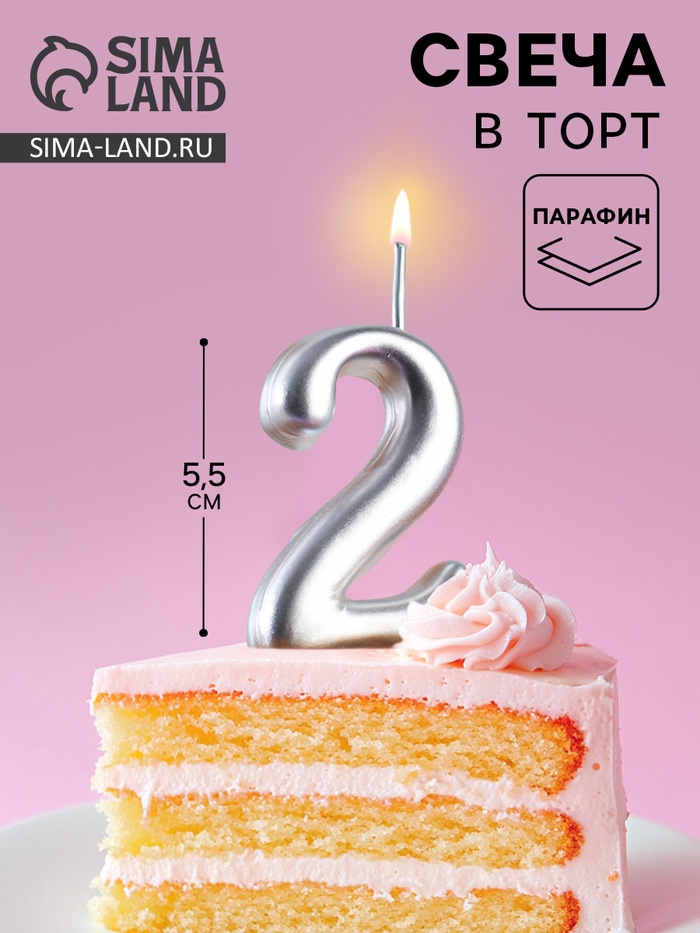 Свеча для торта цифра «Серебряная», 5.5 см, цифра 2