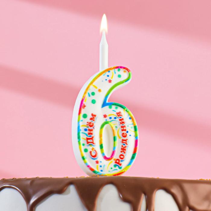Свеча для торта цифра «С Днём Рождения», 10.2 см, цифра 6