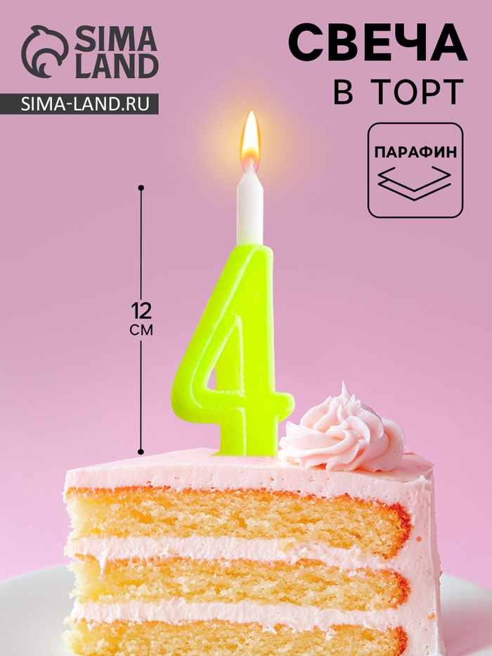 Свеча для торта цифра «Классика», 9.7 см, цифра 4 жёлтая
