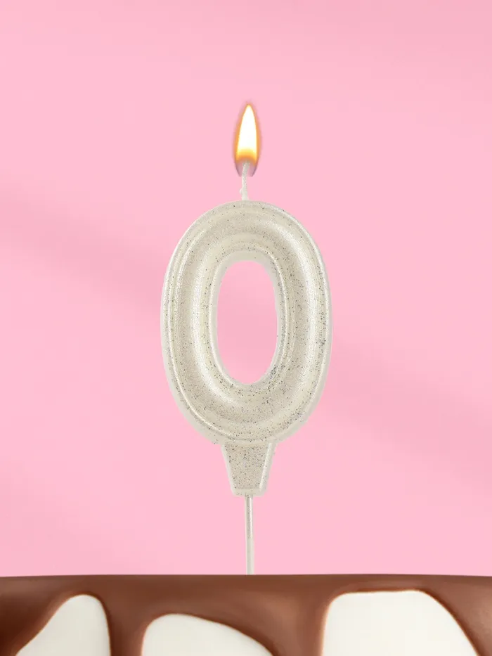 Свеча в торт «Праздник» цифра 0, жемчужный перламутр с блестками
