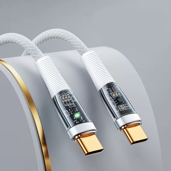 Кабель, 3 А, Type-C - Type-C, 66 W, прозрачный, TPE оплётка, 1 м, белый