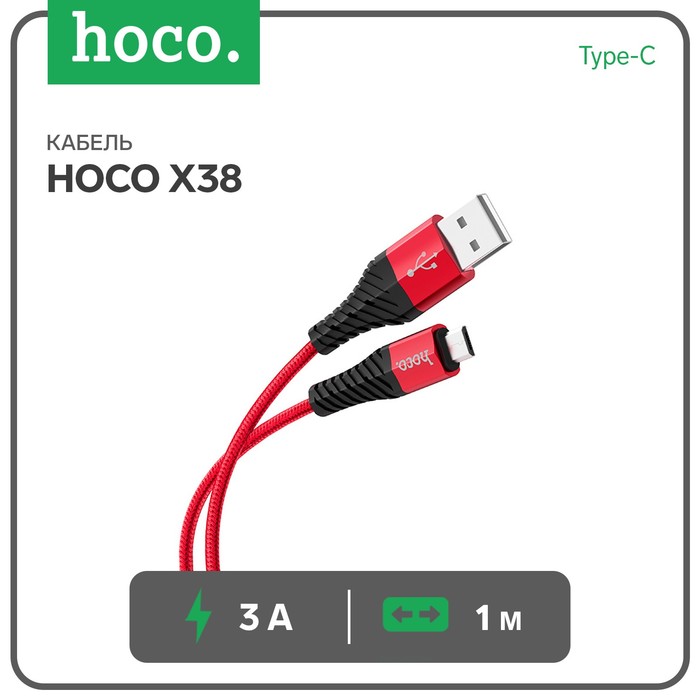 Кабель Hoco X38, USB - Type-C, 3 A, 1 м, нейлон, красный