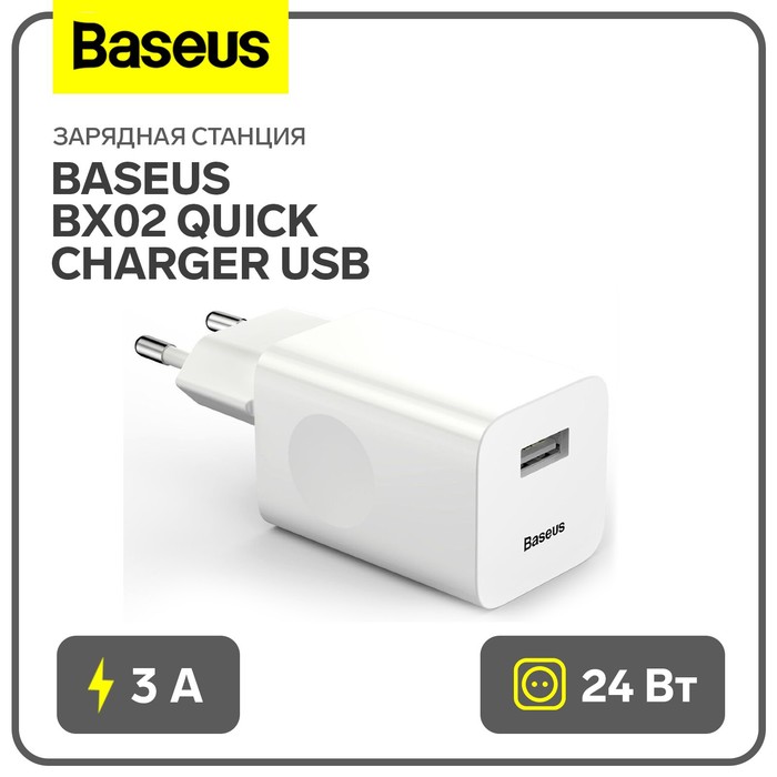 Зарядное устройство Baseus BX02 Quick Charger USB, 3A, 24W, белый