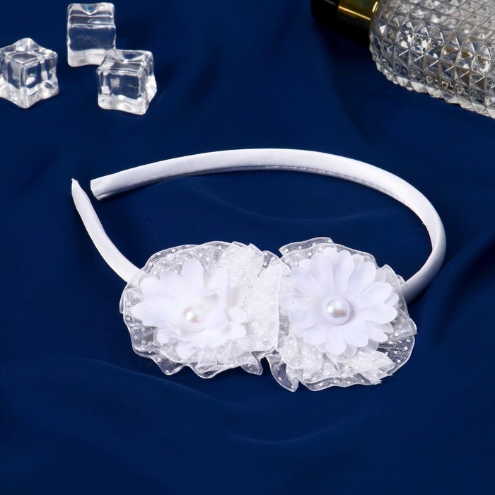 Ободок для волос «Малышка», пышность цветки, 0.9 см, белый