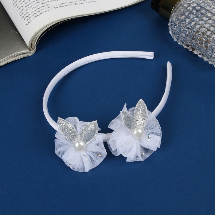 Ободок для волос «Школьница», ушки бусинки, d=5 см, 1 см, белый