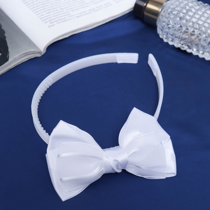 Ободок для волос «Школьница», бант классик, 11×1 см, белый