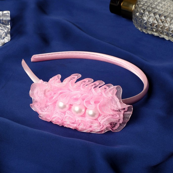 Ободок для волос «Выпускница», бусины кружево, 0.8 см, розовый