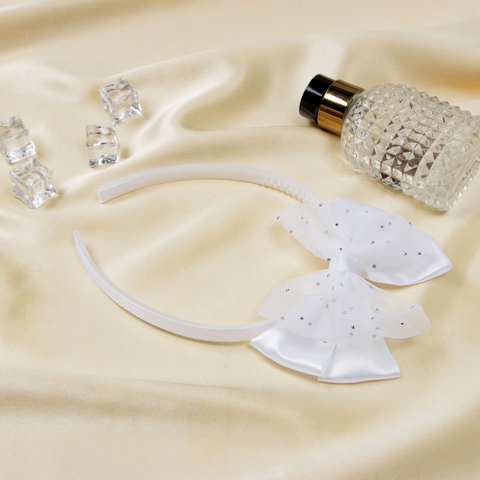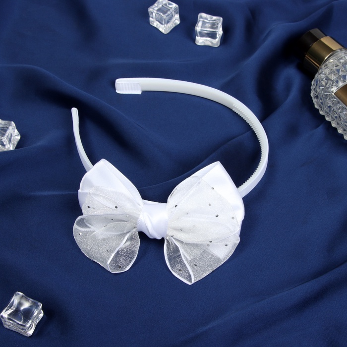 Ободок для волос "Бантик крошка" блеск, 10х1 см, белый