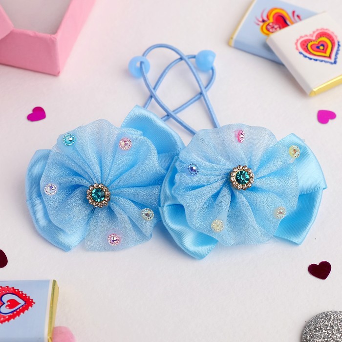 Резинки для волос «Маленькая модница», набор 2 шт., стразы, голубые