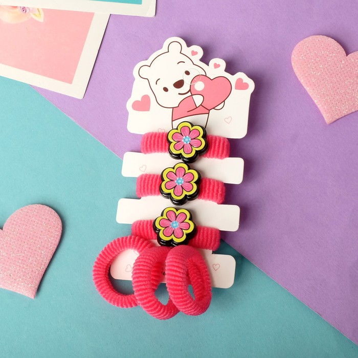 Резинки для волос «Мишутка», набор 6 шт., цветочек, малиновый