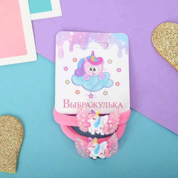 Резинки для волос «Маленькая радость», набор 2 шт., единорожек крылышки, 4 см, розовые
