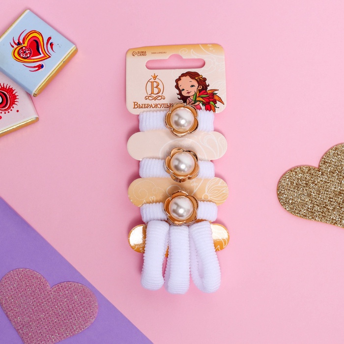 Резинки для волос «Нежность», набор 6 шт., благородный цветок, 2 см, белые