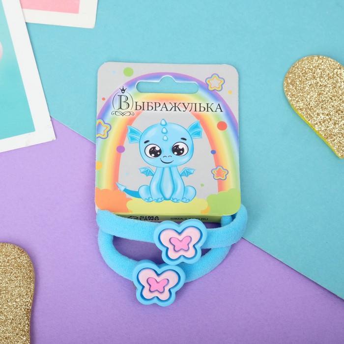 Резинка для волос "Маленькая радость" (набор 2 шт) бабочка, 4 см, голубой