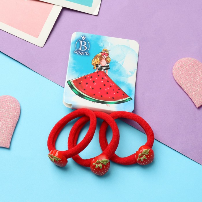 Резинки для волос «Сочное лето», набор 3 шт., клубника, 4 см, красные