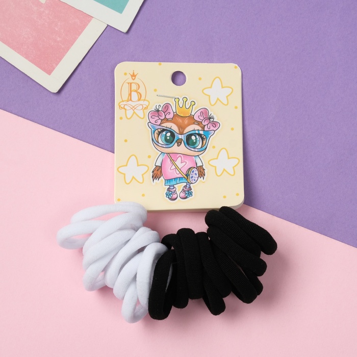 Резинка для волос "Венди" (набор 20 шт) королевна, 2,5 см, чёрный белый