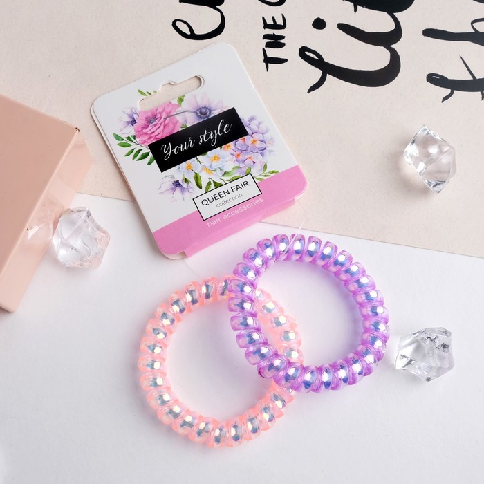 Резинка для волос "Пружинка" (набор 2 шт) прозрачный перелив, 5,5 см, микс