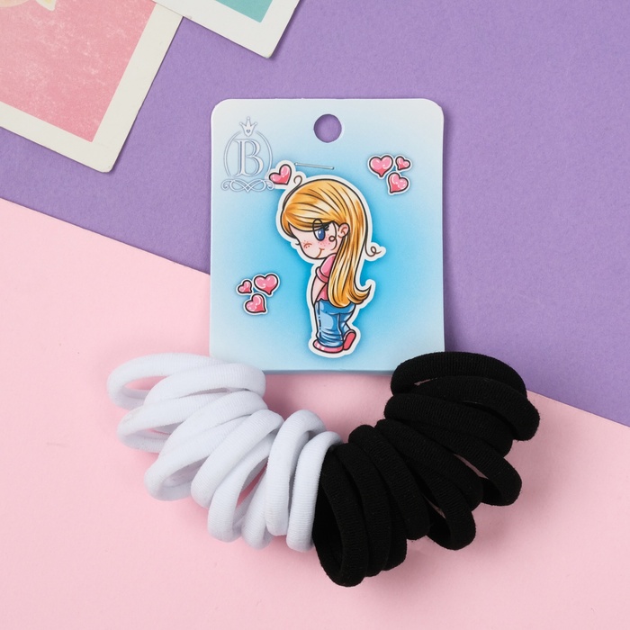 Резинки для волос «Амурные дела», набор 20 шт., любимка, 2.5 см, чёрные, белые