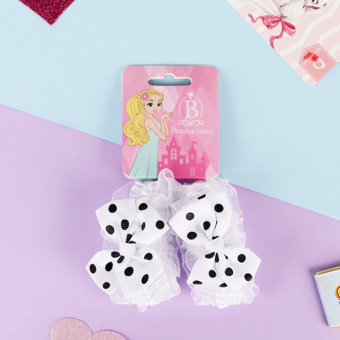 Резинки для волос «Рюши», набор 2 шт., горох, чёрно-белые