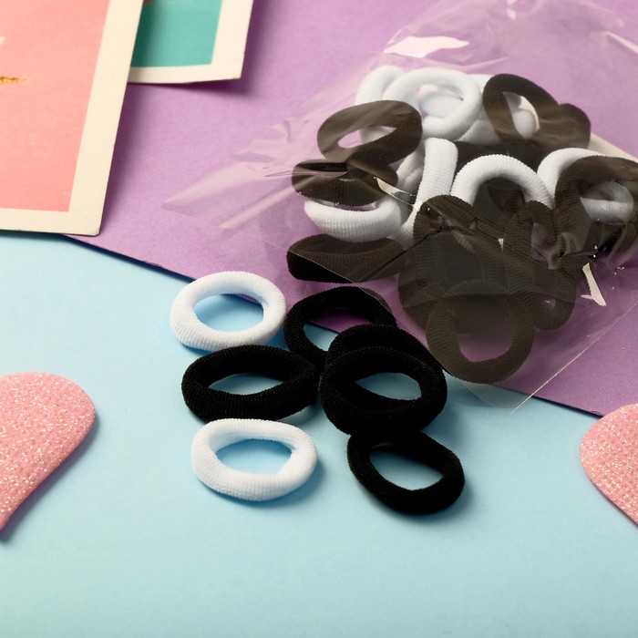 Резинки для волос «Карапуз», набор 20 шт., шапочка, 2.5 см, чёрные, белые