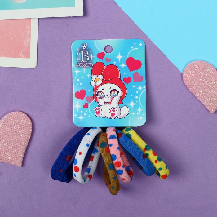 Резинки для волос «Комиксы», набор 6 шт., котик цветочек, 3.5 см
