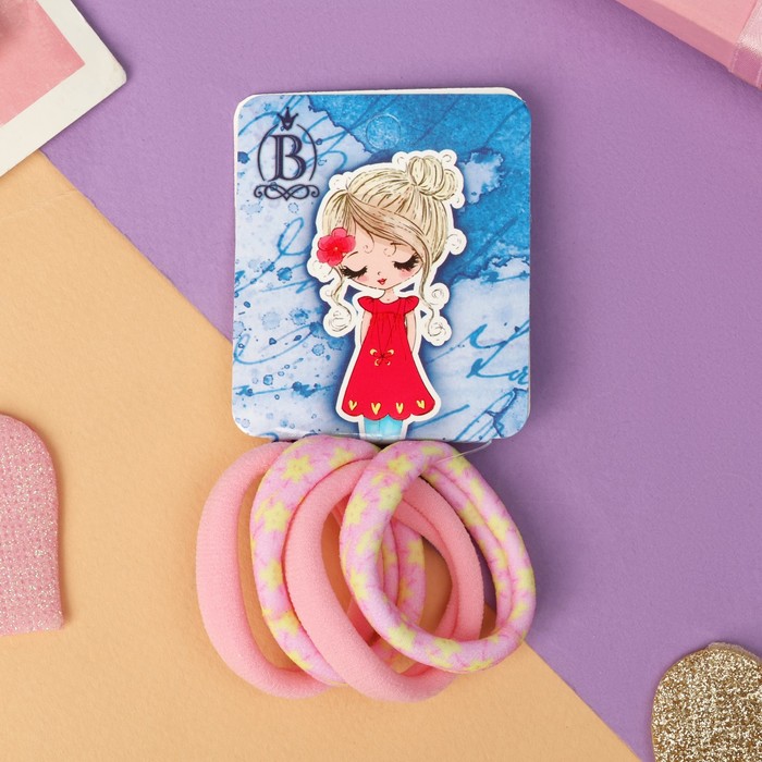 Резинка для волос "Куколка" (набор 4 шт) нежная звёздочки, 4 см