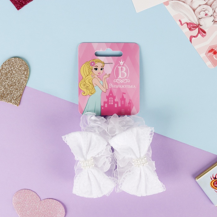 Резинки для волос «Рюши», набор 2 шт., банты с бусинками и кружево, белые