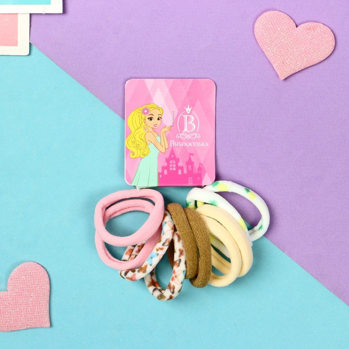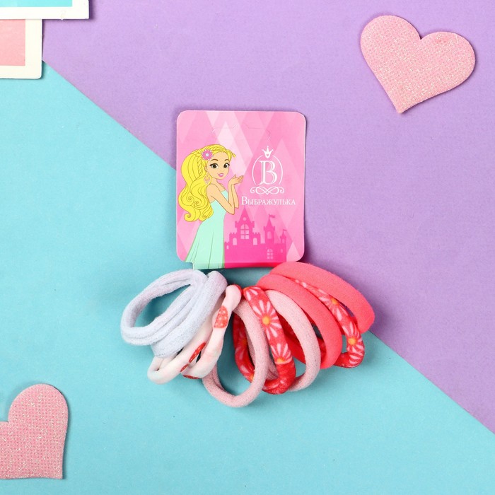 Резинки для волос «Синди», набор 10 шт., сердца текстура, 4 см