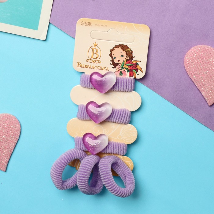 Резинки для волос «Сладость», набор 6 шт., сердце мини, сиреневые