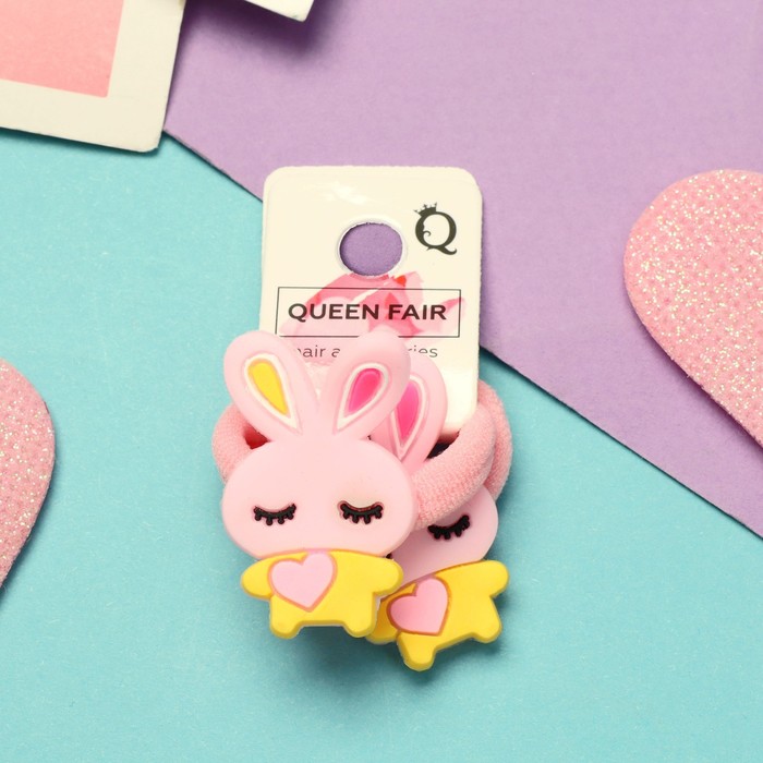 Резинки для волос «Крошка», набор 2 шт., зайка, 3 см, розовые