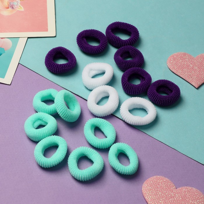 Резинки для волос «Махрушка спорт», набор 100 шт., 2 см, белые, зелёные, фиолетовые