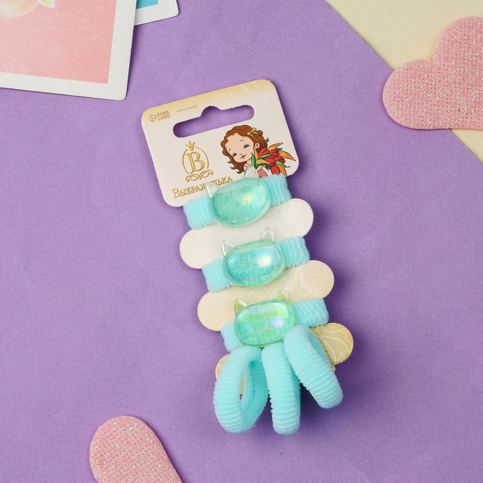 Резинки для волос «Нежность», набор 6 шт., киска, зелёный