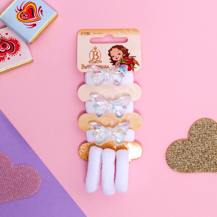 Резинки для волос «Нежность», набор 6 шт., бабочка, 2 см, белые