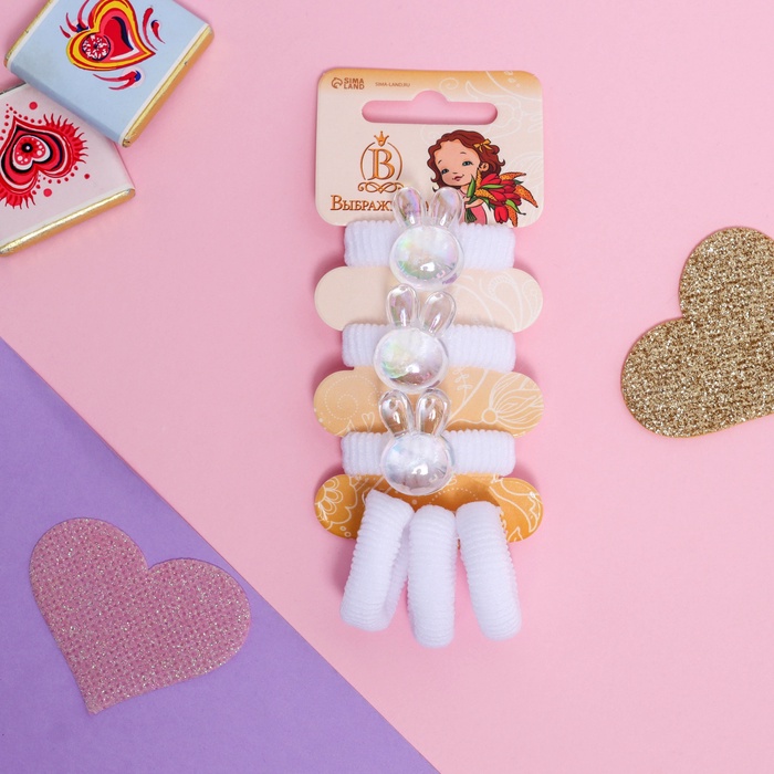 Резинки для волос «Нежность», набор 6 шт., зайка бантик, 2 см, белые