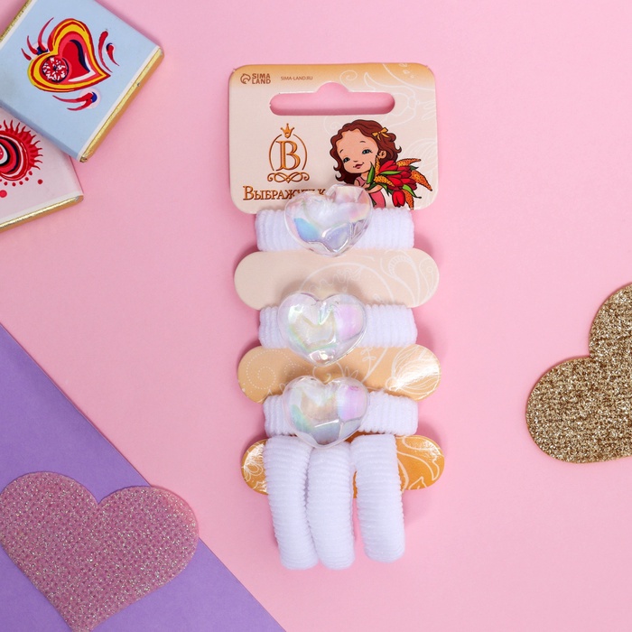 Резинки для волос «Нежность», набор 6 шт., сердце, 2 см, белые