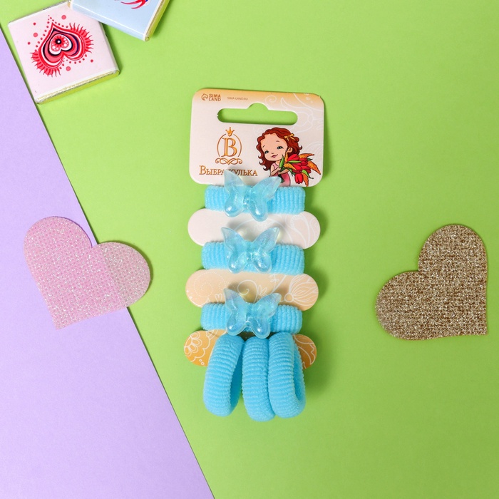 Резинки для волос «Нежность», набор 6 шт., бабочка блеск, 2 см, голубые