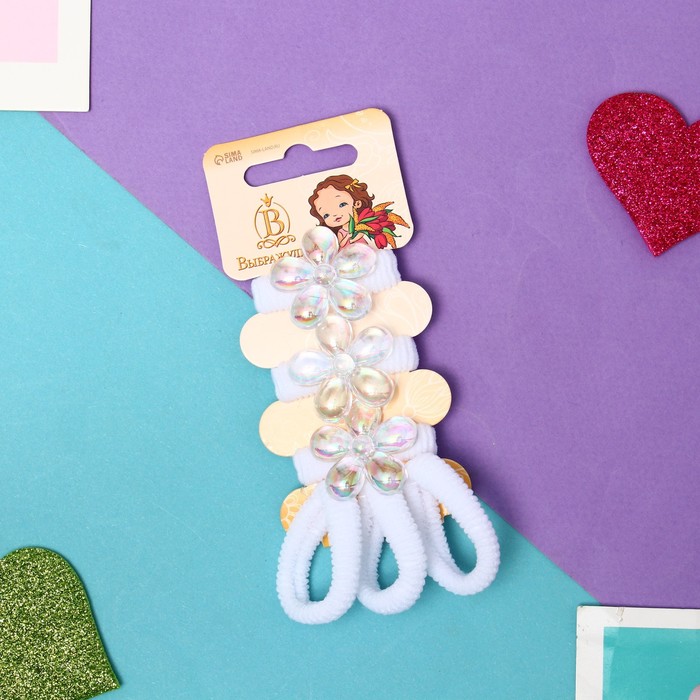 Резинки для волос «Сладость», набор 6 шт., цветочек, 2 см, белые