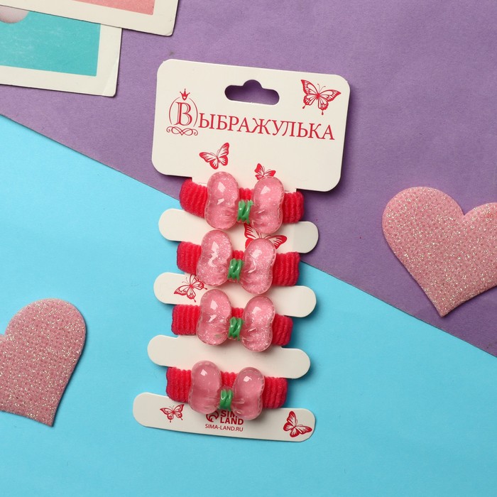 Резинки для волос «Лоррет», набор 4 шт., бантик штрих, тёмно-розовые