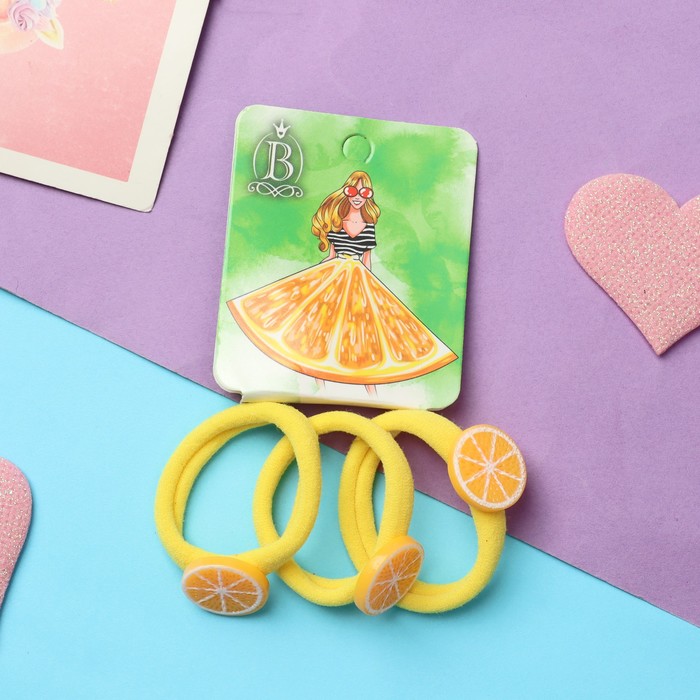 Резинки для волос «Сочное лето», набор 3 шт., апельсин, 4 см, жёлтые
