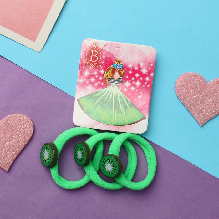 Резинки для волос «Сочное лето», набор 3 шт., киви, 4 см, зелёные