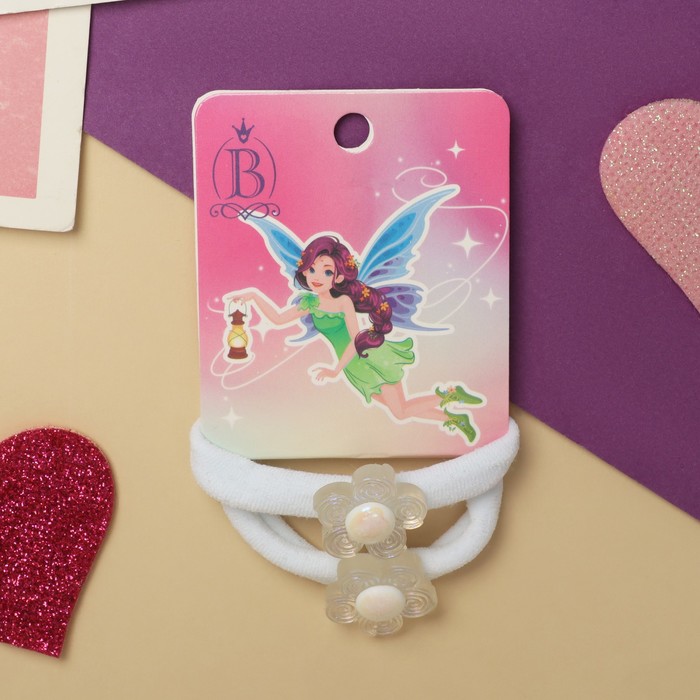 Резинки для волос «Фея», набор 2 шт., цветочек, 4 см, белые