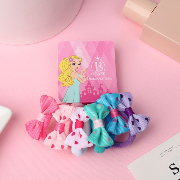 Резинки для волос «Бантик», набор 6 шт., мини сердечки