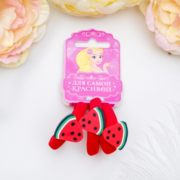 Резинки для волос «Фруктовый взрыв», набор 3 шт., арбузик, 4.5 см, красные