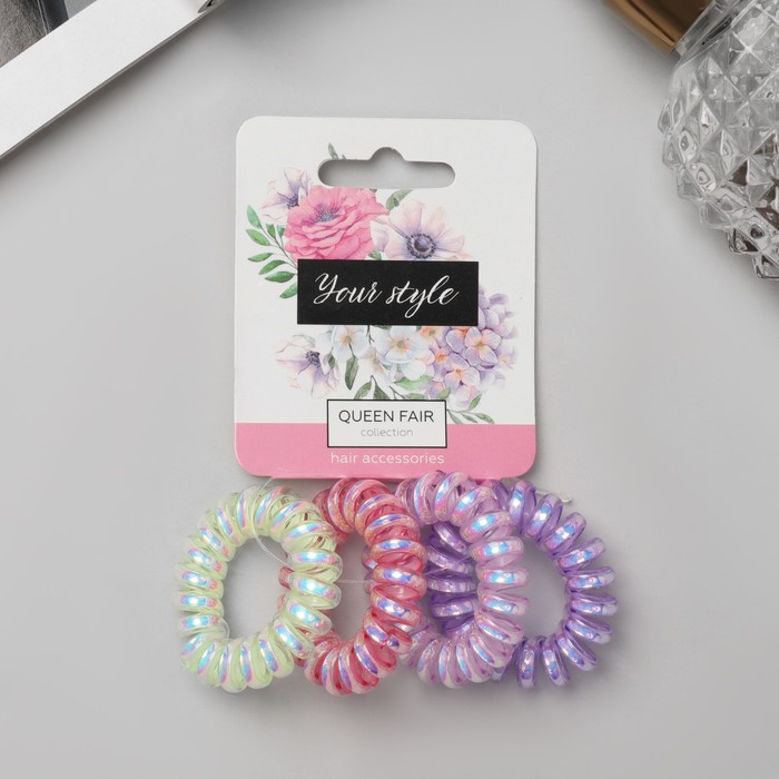 Резинки для волос «Пружинка», набор 4 шт., глянец перелив, d=3.8 см, МИКС