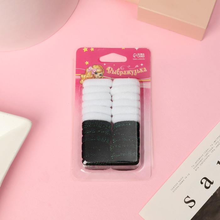 Резинки для волос «Махрушка блеск», набор 24 шт., чёрные, белые