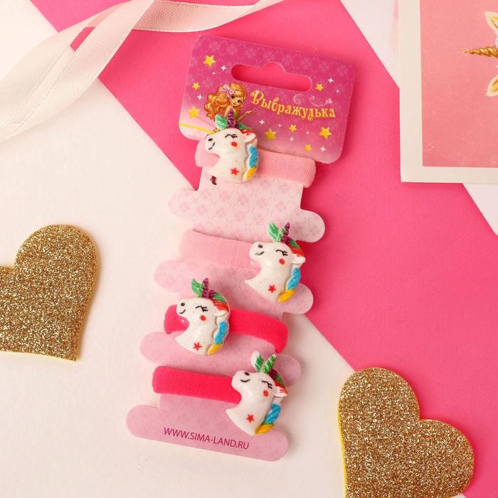 Резинки для волос «Волшебство», набор 4 шт., единорог, 3 см