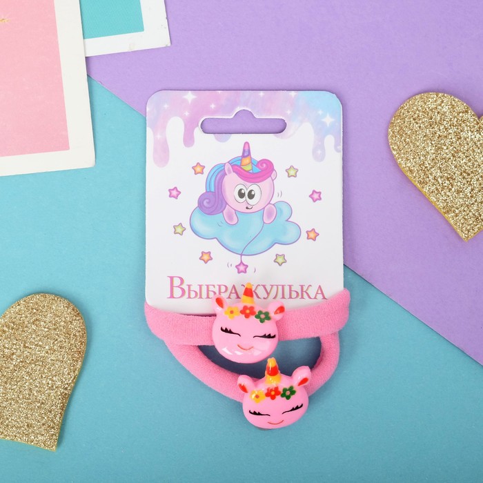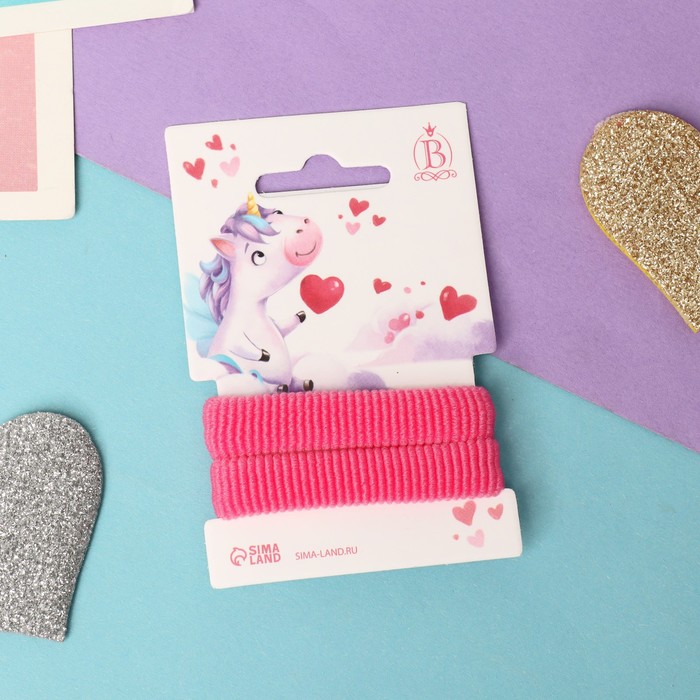 Резинки для волос «Единорожка», набор 2 шт., 5.5 см, розовые