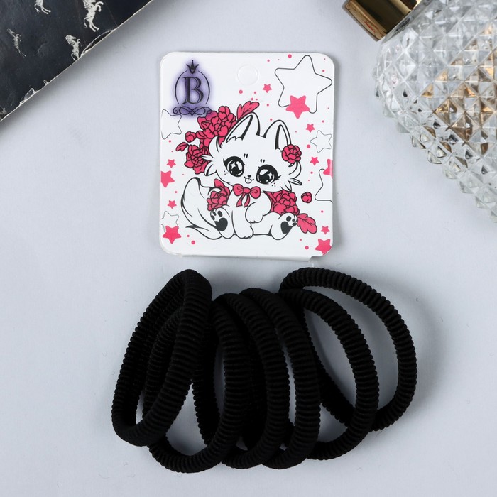 Резинки для волос «Комиксы», набор 6 шт., котик бантик, 5 см, чёрные