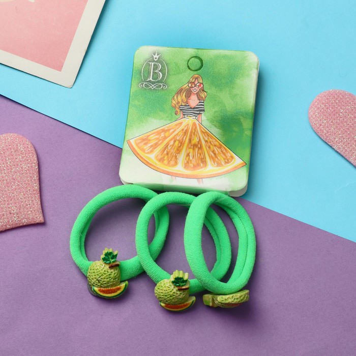 Резинки для волос «Сочное лето», набор 3 шт., личи, 4 см, зелёные
