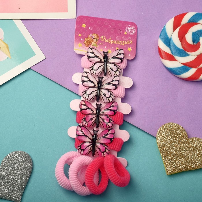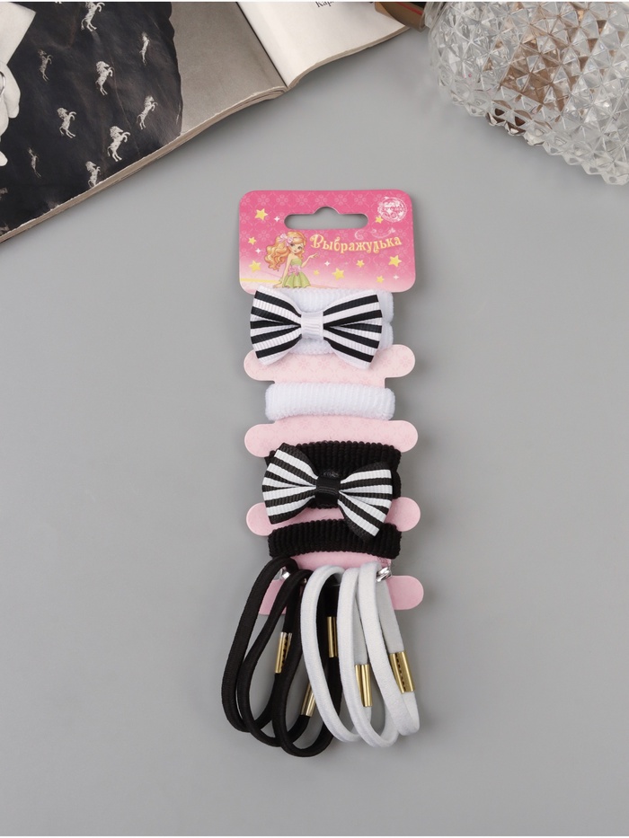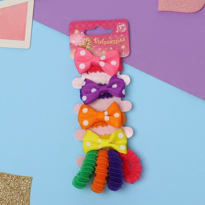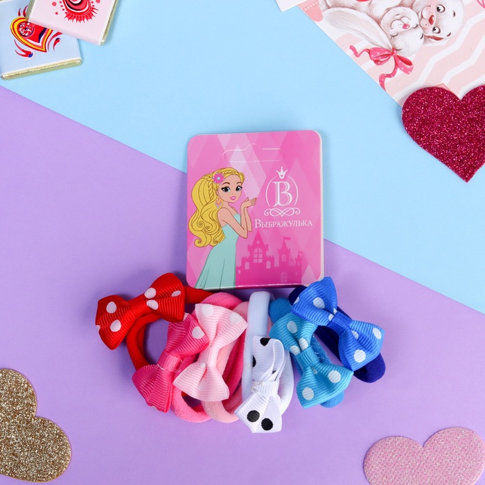 Резинки для волос «Выбражулька», набор 6 шт., бантик сердечки
