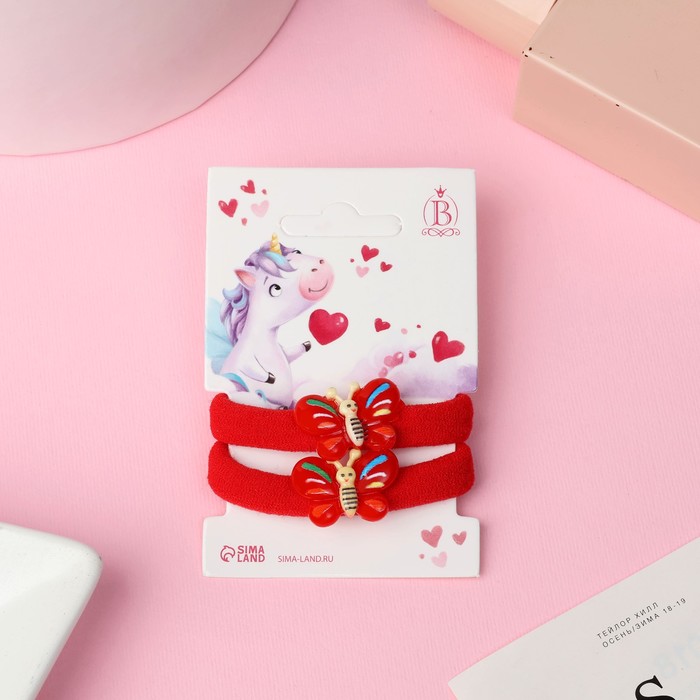 Резинки для волос «Крошка», набор 2 шт., бантик горошек, красные